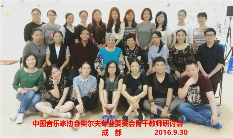2016年9月29日—30日,为期两天的“2016中国音协奥尔夫专业委员会骨干教师研讨会”在奥尔夫成都中心圆满落下帷幕,为祖国母亲67华诞献礼。包括奥尔夫专业委员会会长李妲娜教授、副会长许卓娅教授在内的三十余名中国奥尔夫协会骨干教师参加了此次研讨会,会议由李妲娜会长主持。研讨会别开生面的以李老师组织骨干教师即兴演唱奥尔夫经典课例《秋思》(四声部)开场,并在其后分三个主题进行了非常深入的研讨。